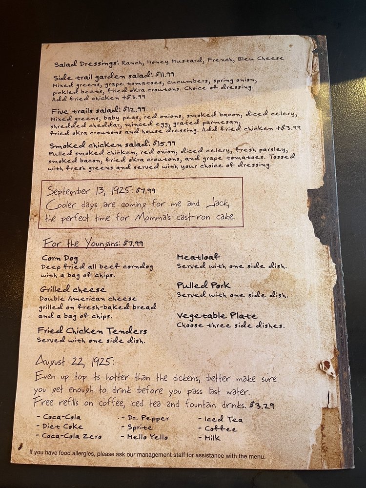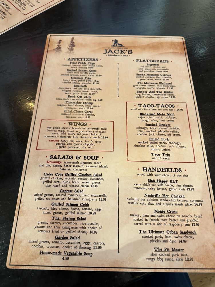 Located in Gatlinburg, TN, Cumberland Jacks LeConte Kitchen offers a casual and tourist-friendly atmosphere perfect for breakfast and brunch. With a variety of vegetarian options, this restaurant provides a family-friendly experience with good service and moderate noise levels. Customers praise the generous portion sizes and flavorful dishes, such as the grilled salmon and Monte Cristo sandwich. The wait staff is attentive and knowledgeable, providing recommendations for delicious meals like the crispy chicken with creamed corn. The cozy decor adds to the overall charm of the establishment, making it a must-visit spot on the strip. With reasonable prices and a wide selection of options, Cumberland Jacks LeConte Kitchen is a highly recommended dining destination for both locals and tourists alike.